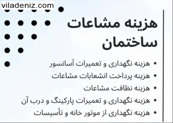 برخی شهرک ها آییننامه داخلی دارند که در آن نحوه استفاده از مشاعات، هزینه نگهداری و قوانین ساکنین مشخص شده است. از مشاور املاک خود بخواهید این سند را در اختیار شما بگذارد.
